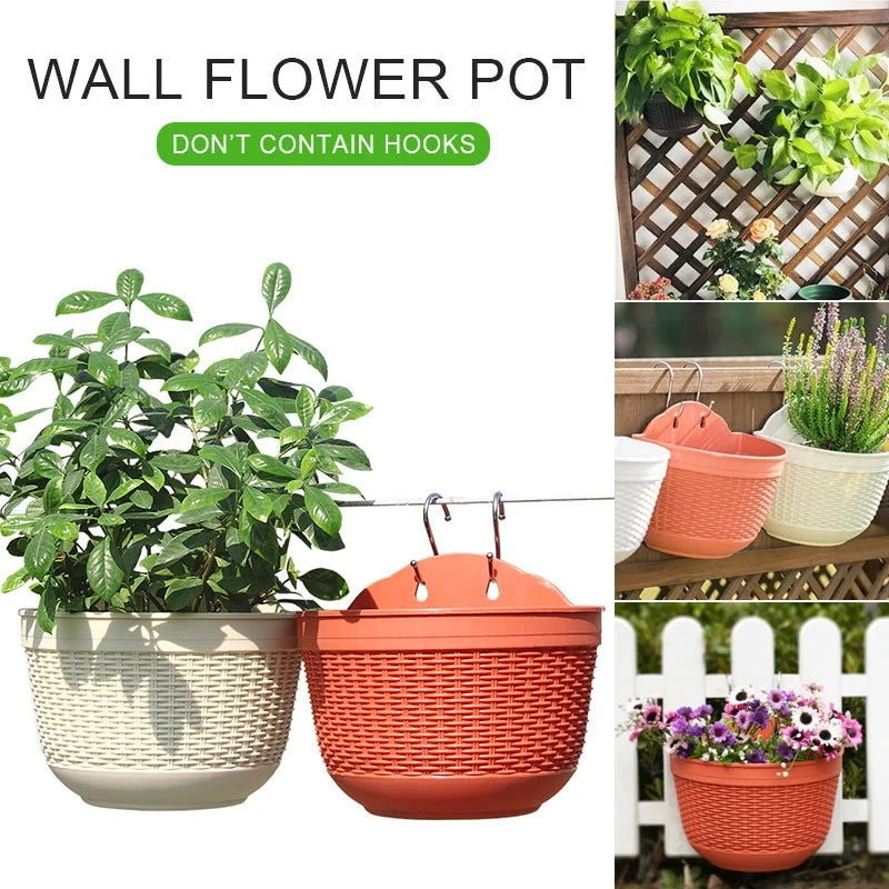 1 Pcs Imitation Rattan Weaving Creative Flower Planter Garden Pot Flowerpot Wall Hanging Plant Grow Basin Baskets Yard Balcony