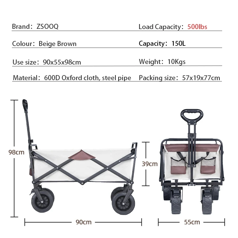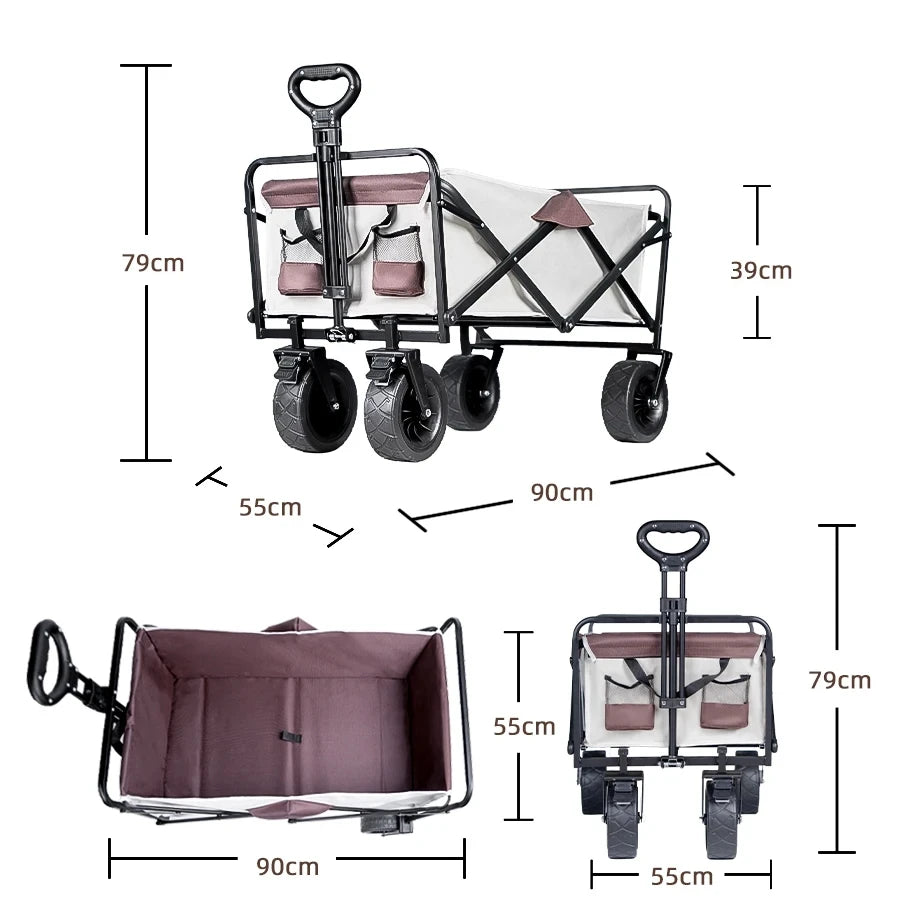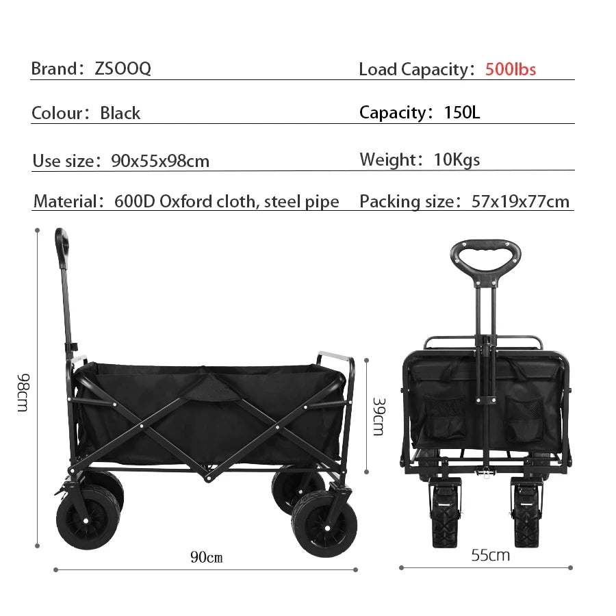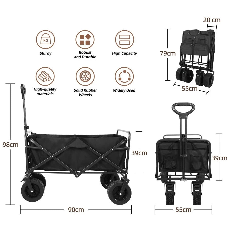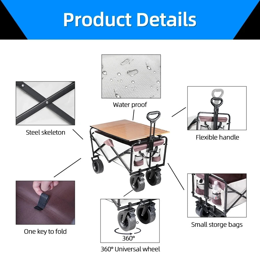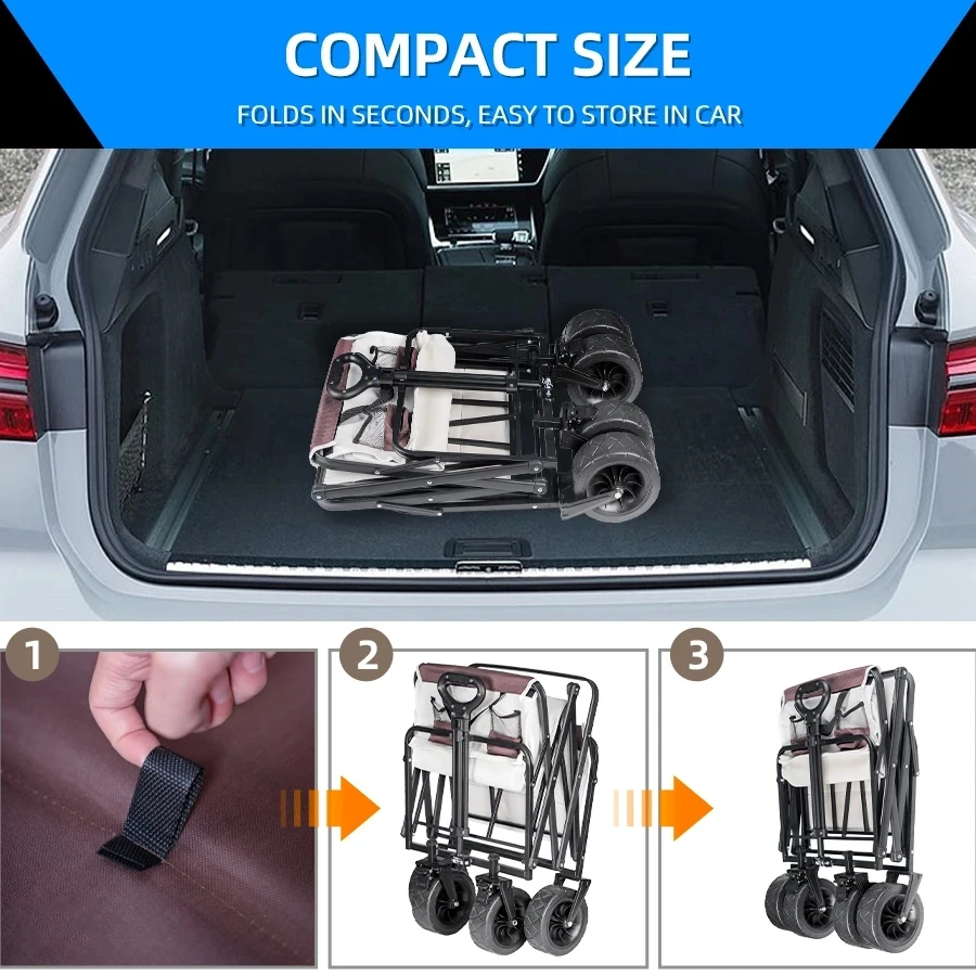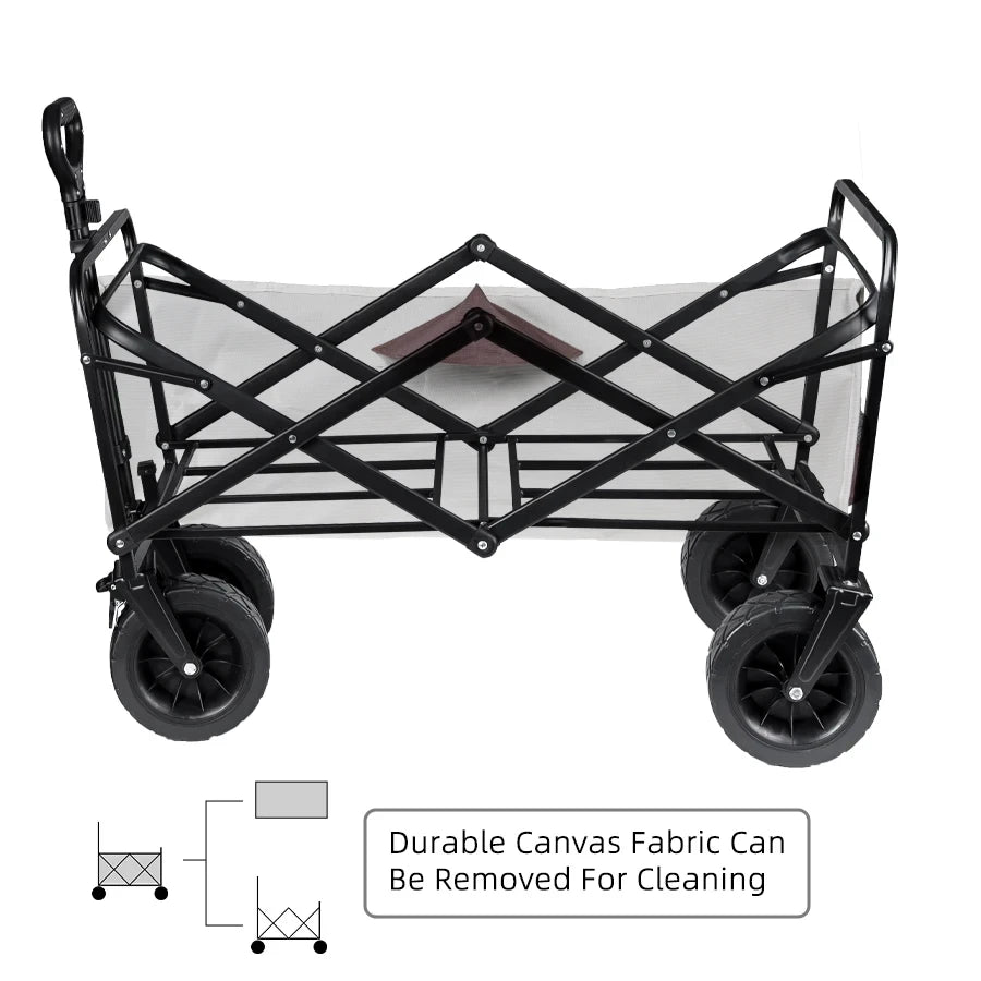 500lbs Capacity Foldable Beach Wagon with Big Tank Wheels, Perfect for Sand, Garden and Outdoor Picnic