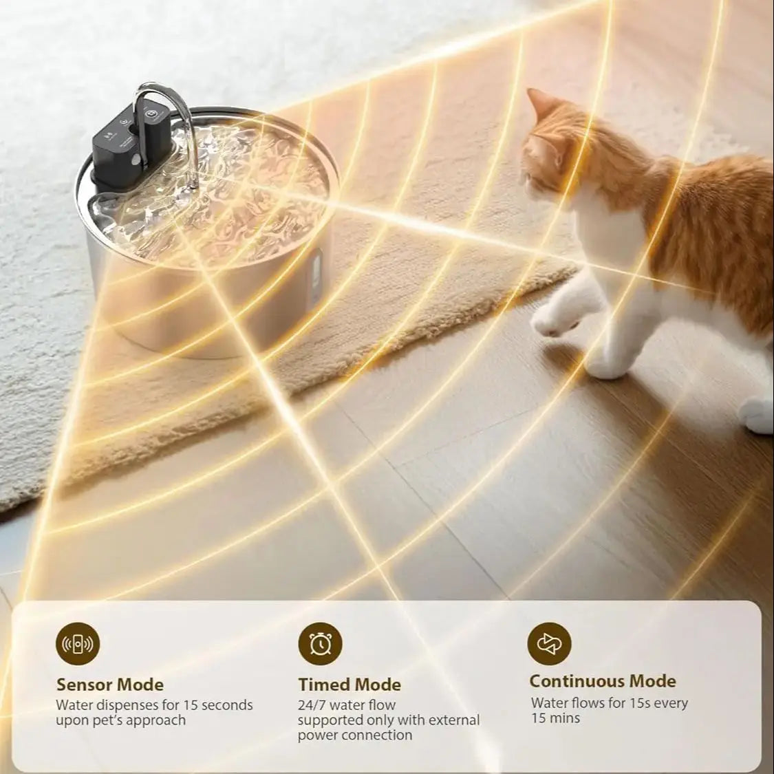 3.2L Stainless Steel Cat Water Fountain Wireless Sensor Smart Automatic Dog Water Dispenser Drinking Fountain 4000mAh