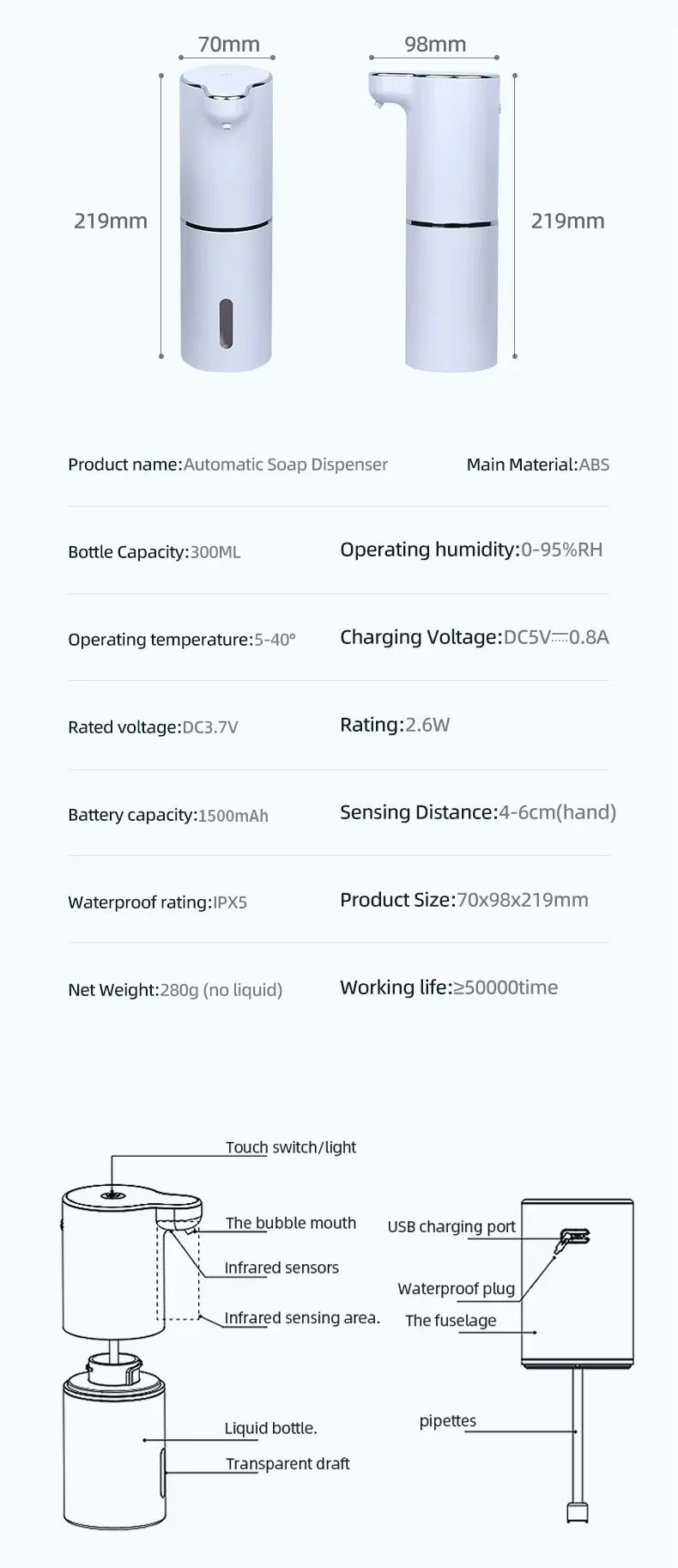 300ML Upgrade Intelligent Induction Touchless ABS Plastic Electric Automatic Sense Foam Soap Dispenser Hand Dish Washing Machine