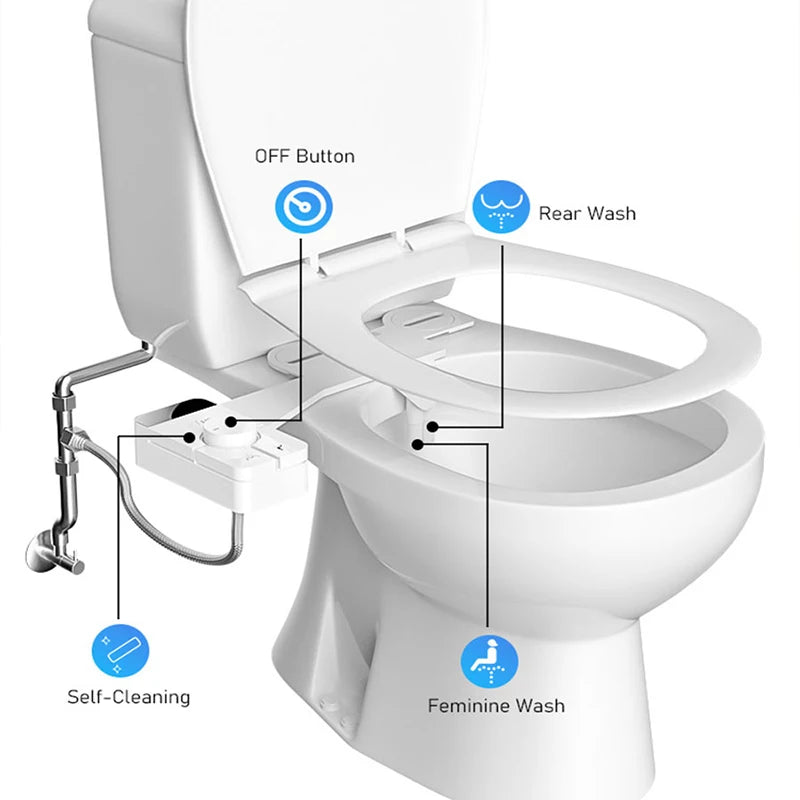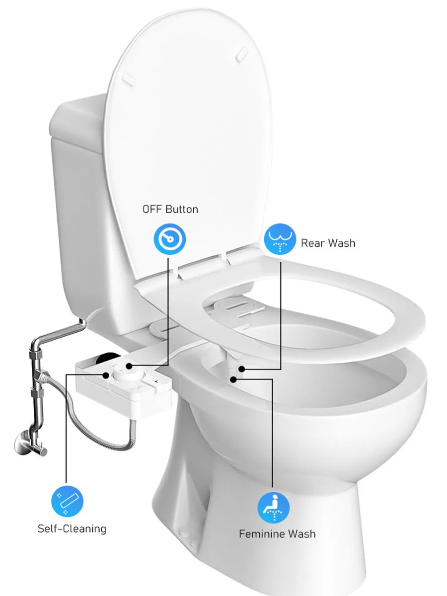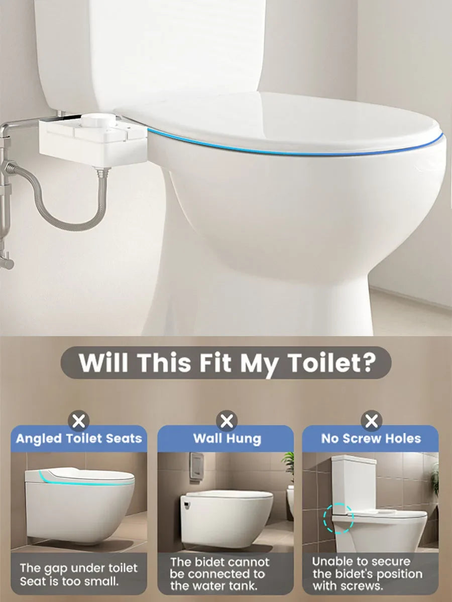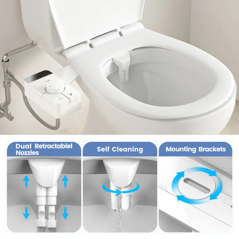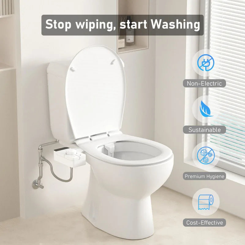 Adjustable Water Pressure Ass Sprayer Bidet Sprayer Attachment Non-Electric Ultra-Slim Toilet Seat Attachment Dual Nozzle Bide
