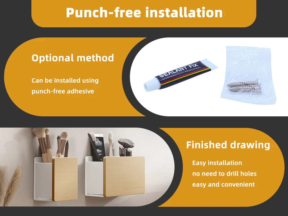 Solid wood Bathroom Storage Rack Punch-free installation Wall mounting Can store toothbrush toothpaste comb and cosmetics