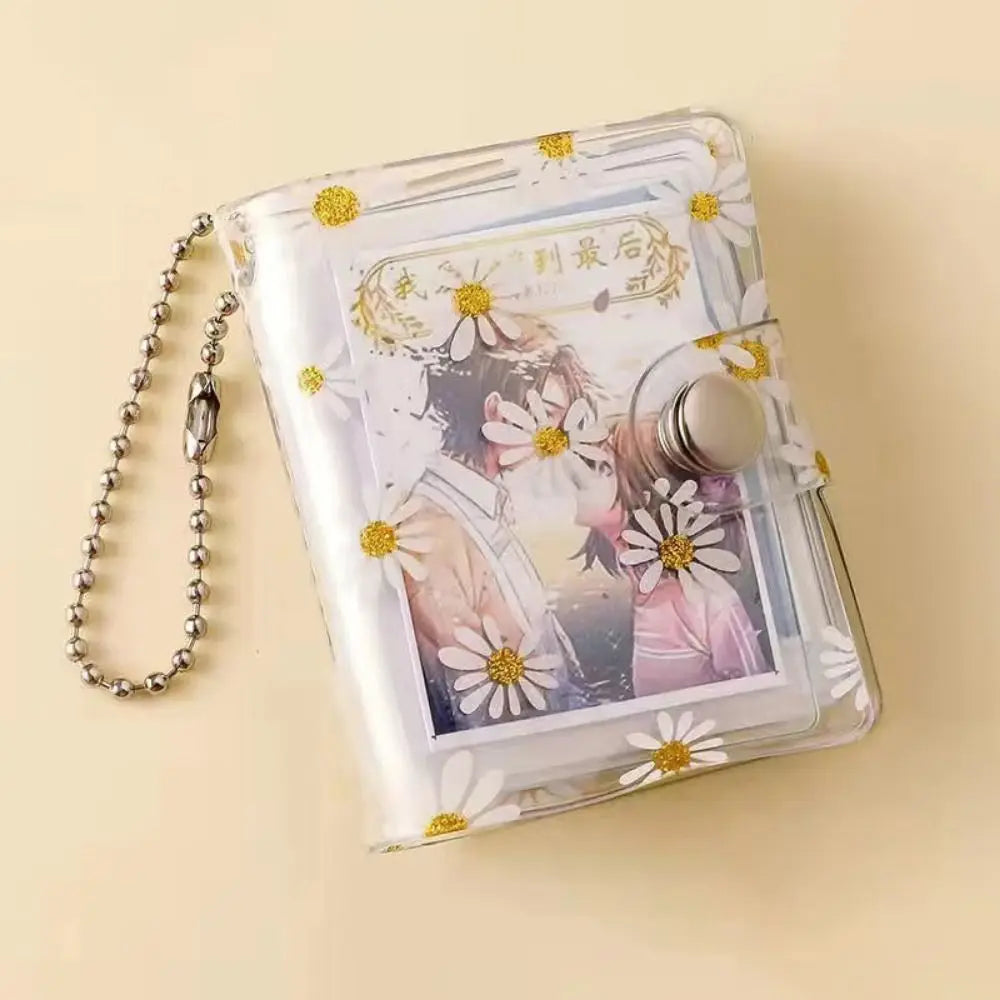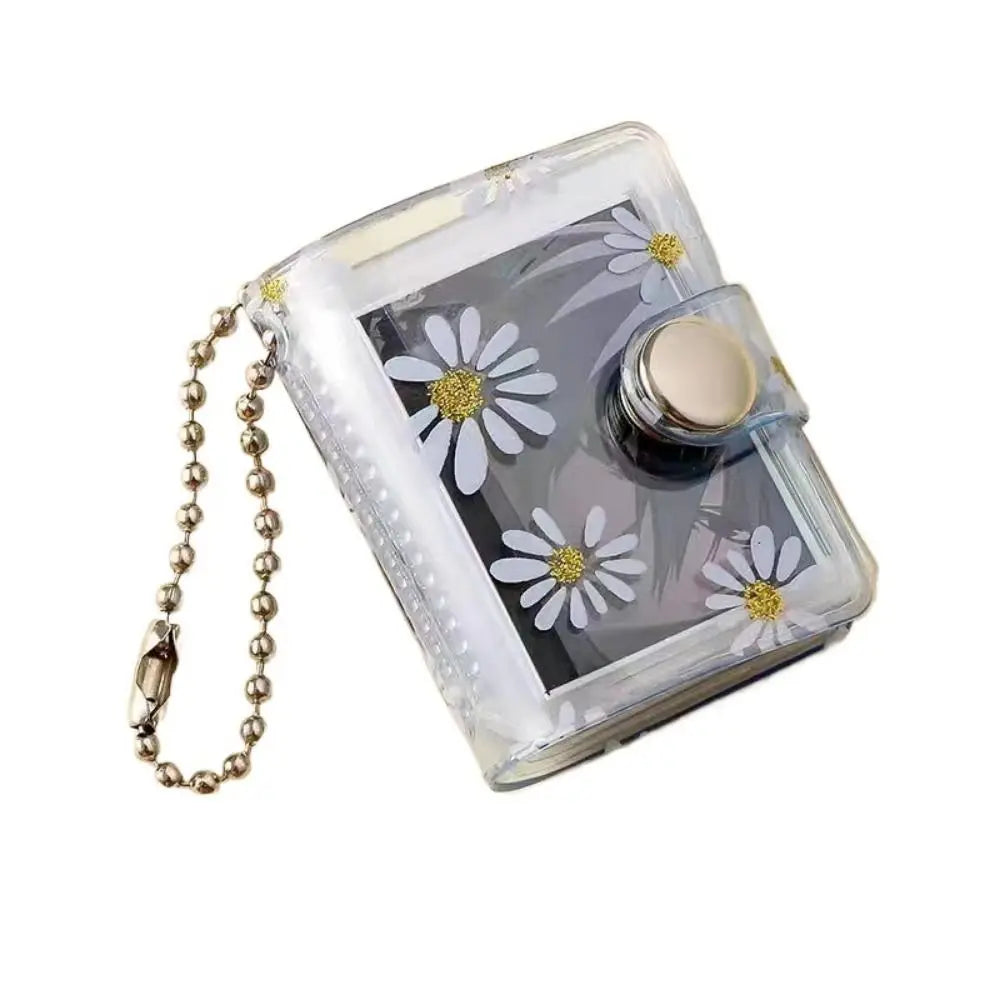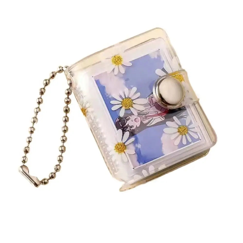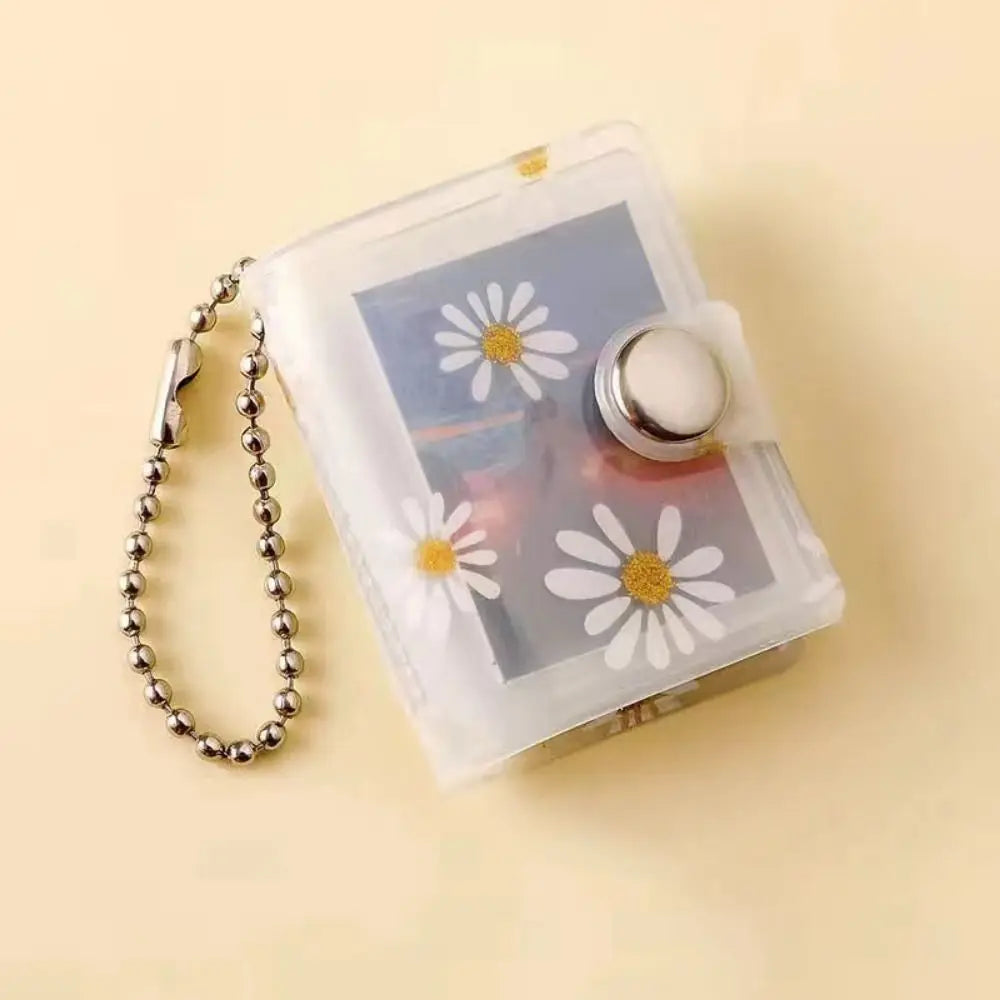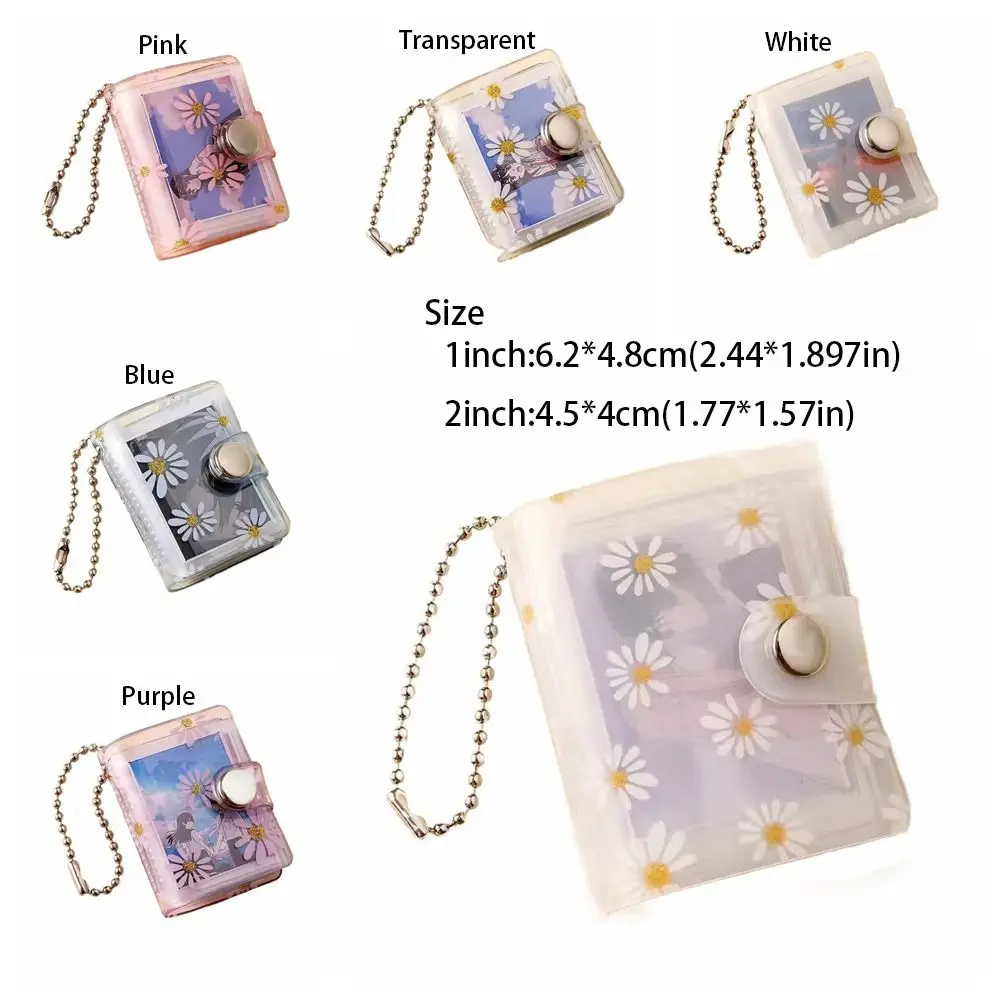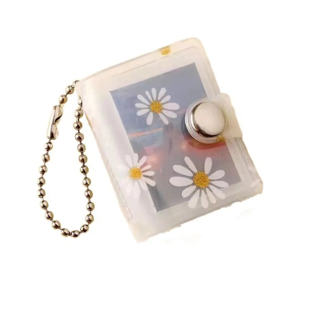1/2inch Thickened Daisy Photo Album With Buckle Wear-resistant Mini Card Holder Hanging Pocket Keychain Album Birthday Gift
