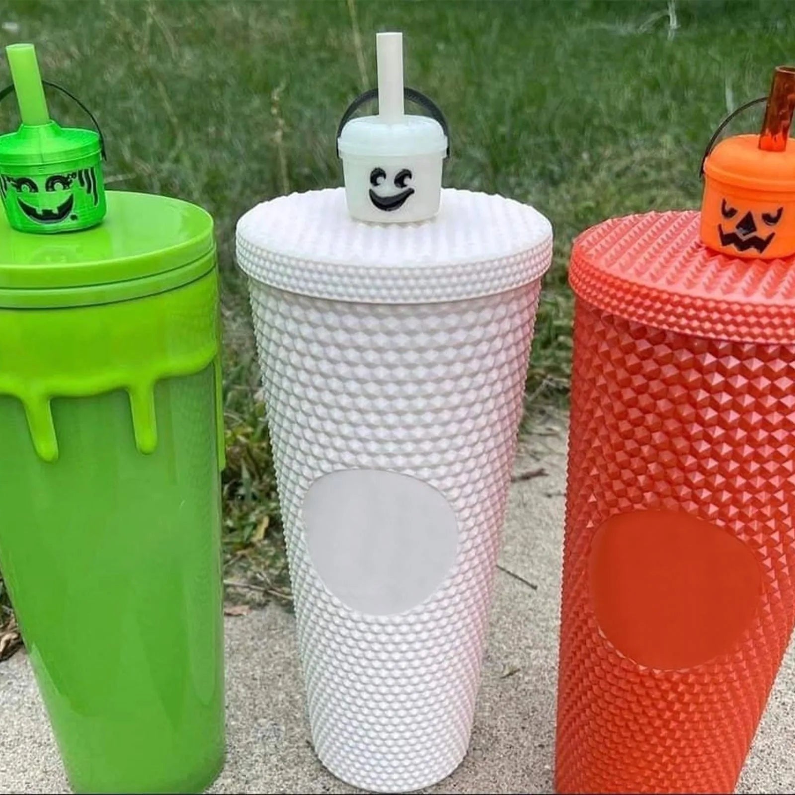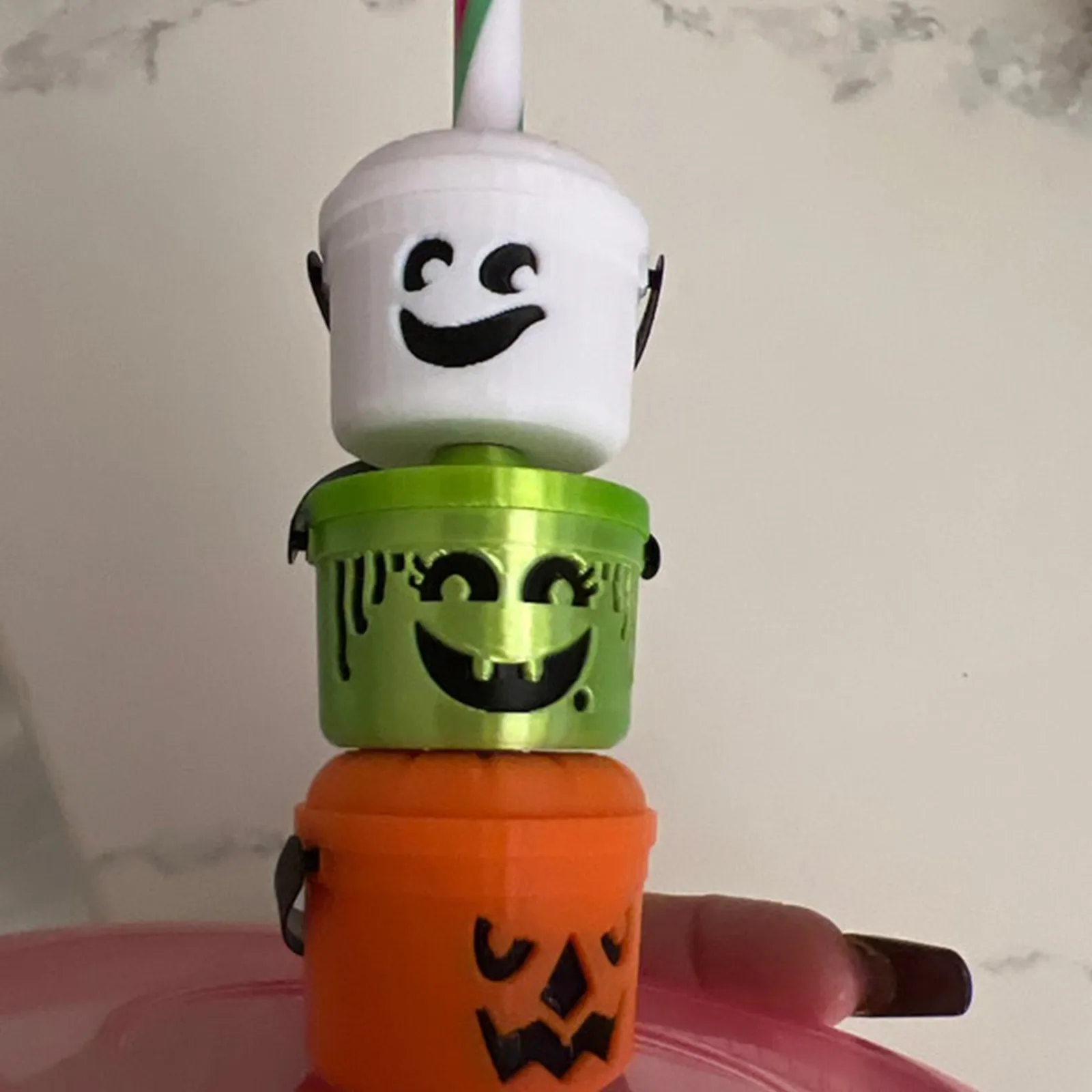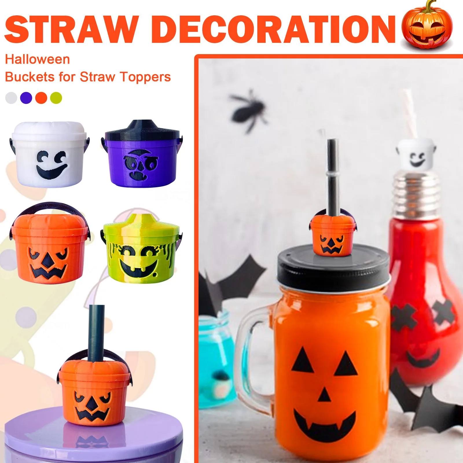 Halloween Buckets Straw Toppers Creative Funny Straw Decoration Multifunctional Pumpkin Bucket Straw Protector for Home Kitchen
