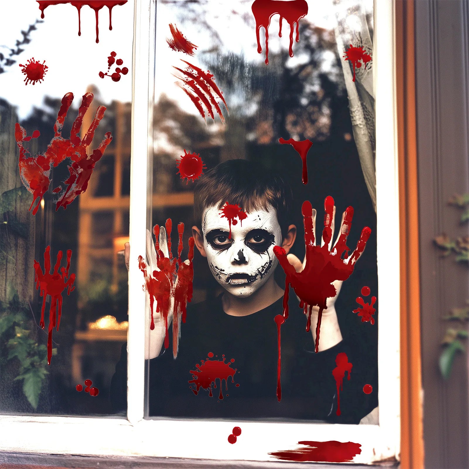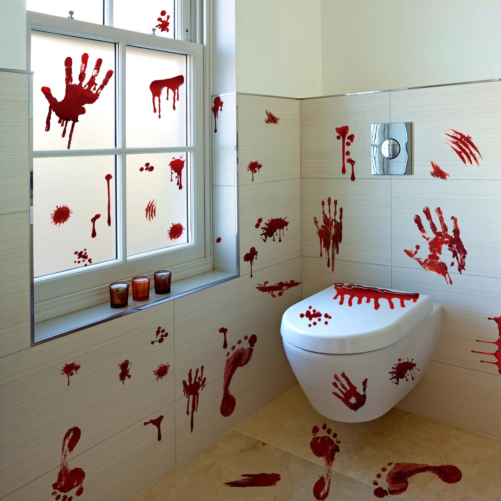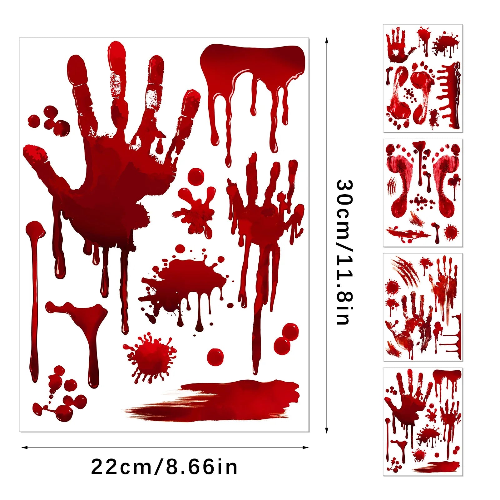 5 pcs New Halloween Blood Handprint bedroom living room creative decoration can remove waterproof Halloween wall stickers