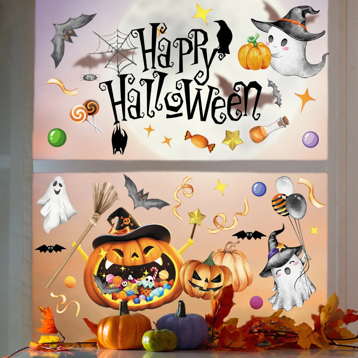 Halloween Decoration Window Stickers Ghost Festival Electrostatic Glass Stickers Mall Glass Window Dress Up Sticker Decor