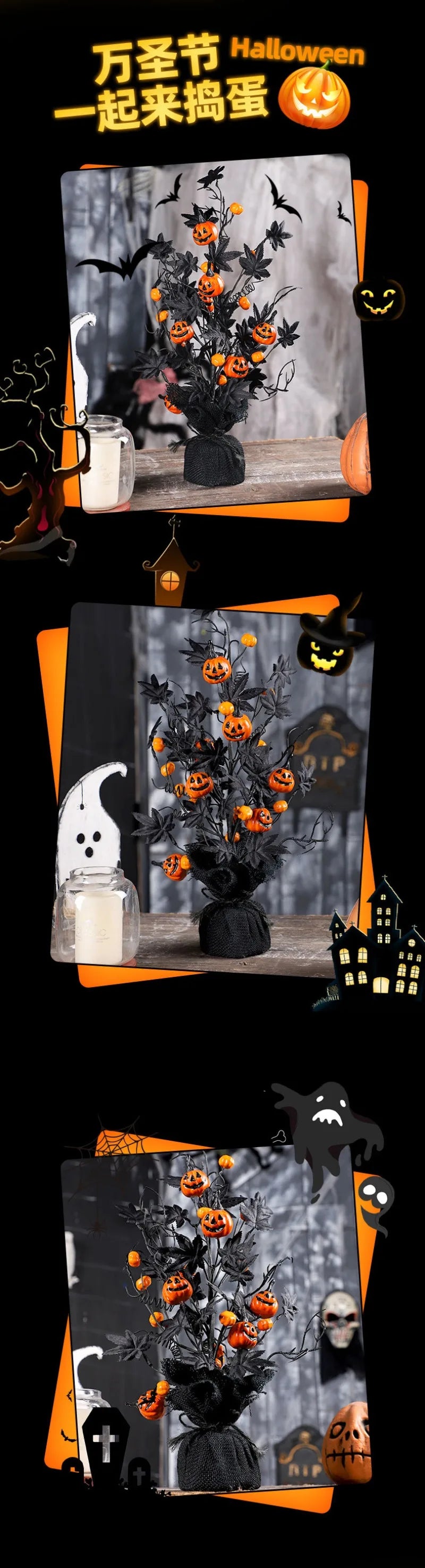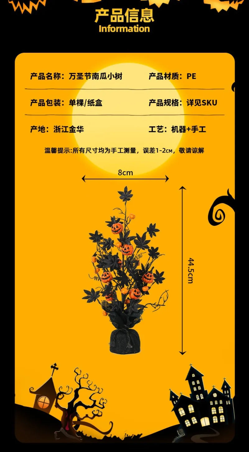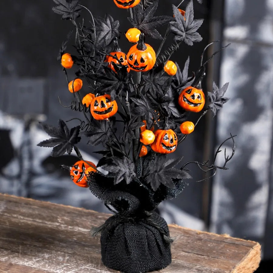 Halloween Decorations Pumpkin Head Black Maple Leaf Artificial Tree Tabletop Ornaments Party Holiday Home Decoration Ornaments