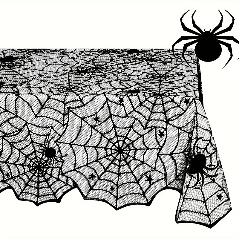 Black Lace Spider Web Tablecloth - Halloween Decoration,Suitable for Fireplace,Fireplace Rack,Kitchen,and Party Table Decoration