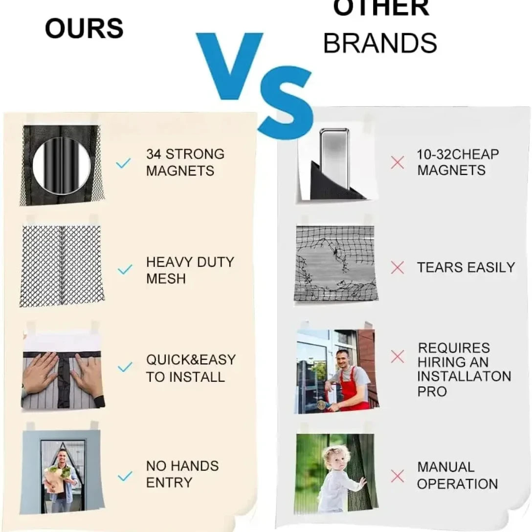 Heavy Duty Magnetic Screen Door Mesh Curtain Mosquito Net Bug Hands Free Partition Mute Striped Door Curtain Bedroom Ventilation