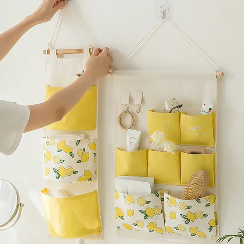 Multipurpose Hanging Storage Bag - Cotton and Linen Wall-mounted Door Bag Can Hold Mobile Phones and Dormitory Storage Supplies